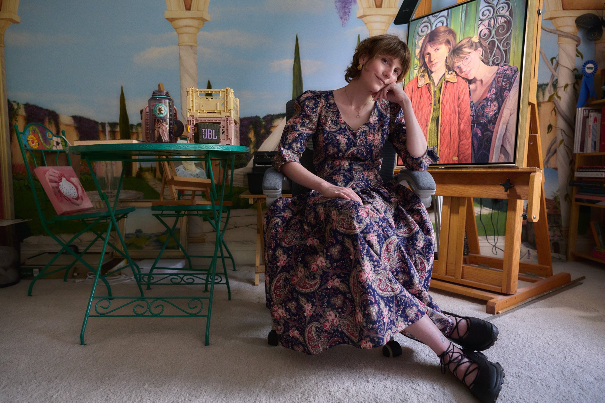 Aurora Abzug: I love when people tell me my work makes them feel cozy or safe. I do a lot of emotional processing and reflection on my place in my larger cultural setting in my work, and I feel successful when my paintings speak to people working through similar questions and looking for comfort.