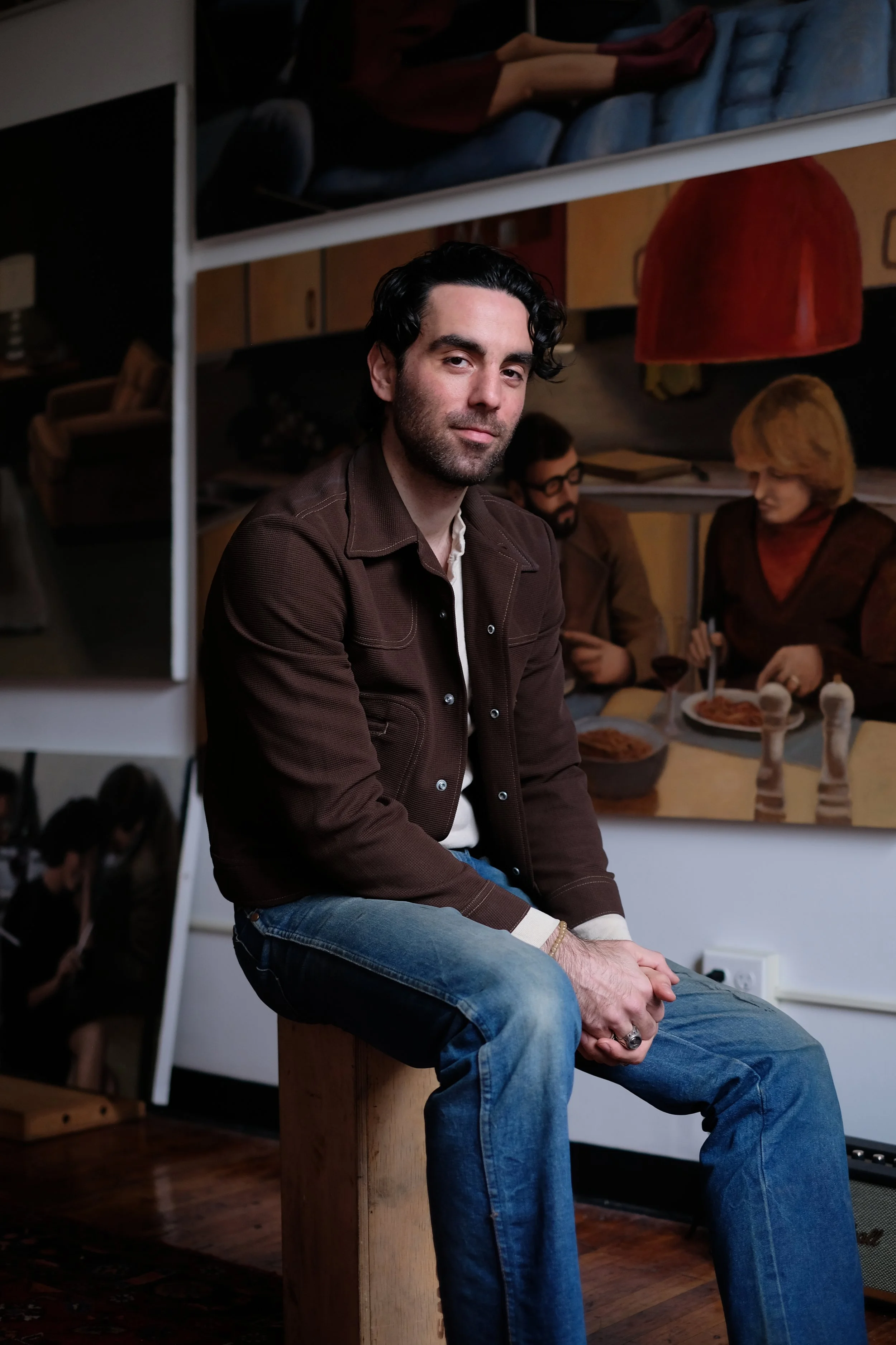 Ray DellaMura uses classical painting techniques to capture moments in time as they would exist in someone's subconscious. Largely inspired by archival advertisements, classic films, and Old Master portraits, he works primarily in oils and stretches each canvas by hand in his studio in Brooklyn, New York. DellaMura completed his undergraduate studies at Brooklyn College with a Bachelor's in Art. He then studied realistic oil portrait painting at SVA's Extended Learning Program.