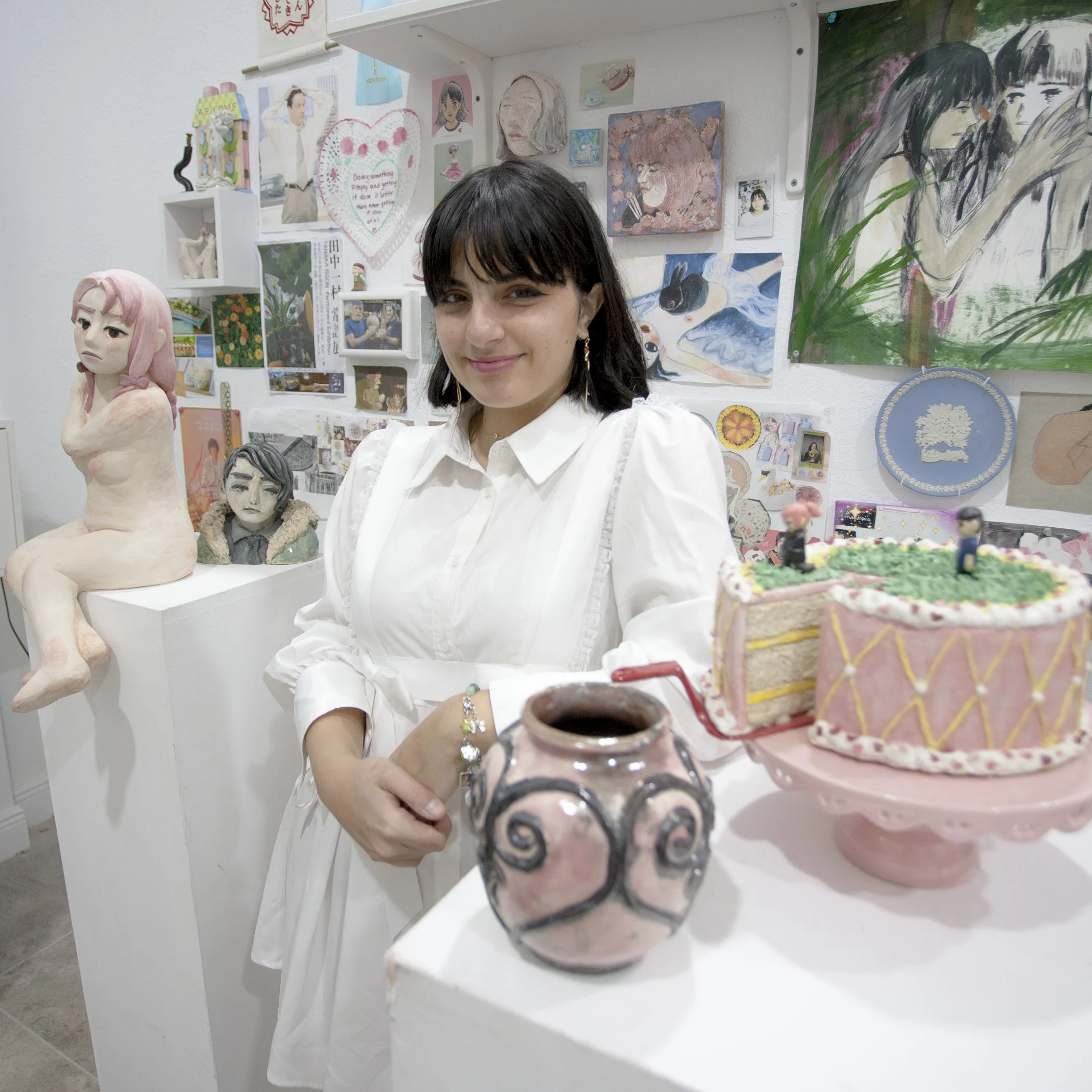 Sarah was born and raised in Miami; she graduated with a dean's award from the Visual Art department of the New World School of the Arts in 2013. After high school, she graduated from the Kansas City Art Institute, majoring in Ceramics, and completed a certificate program focused on Asian art. In 2017, Sarah was accepted into the JET program to move and start a life in Japan. While working a full-time job, she was able to complete a ceramic apprenticeship in the studio, Yachaboyaki (野茶坊焼). She studied under the ceramic master Junichi Ike-san (窯元・池淳一さん) for three years, becoming his first and last apprentice. After returning to the United States, Sarah became a founding member and owner of 2win! Studios with her twin sister Samantha Ferrer. 2win! Studios is based in Hialeah, Florida, and aims to create more opportunities for artists to connect in Hialeah. Sarah continues to work towards her goal of helping create a stronger presence for ceramics in Miami.